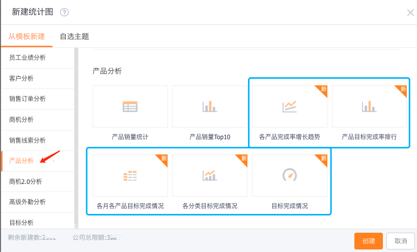 「产品分析」下预设6个与目标分析相关的模板,仅支持分析考核产品的目标规则