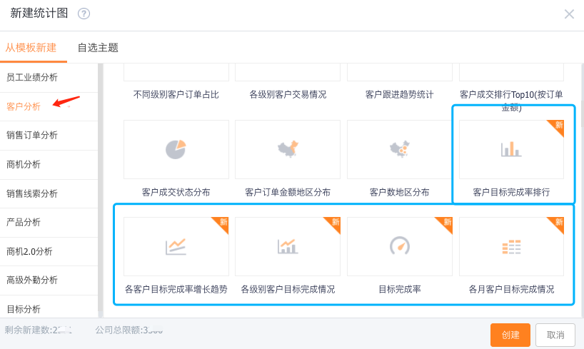 「客户分析」下预设6个与目标分析相关的模板,仅支持分析考核客户的目标规则