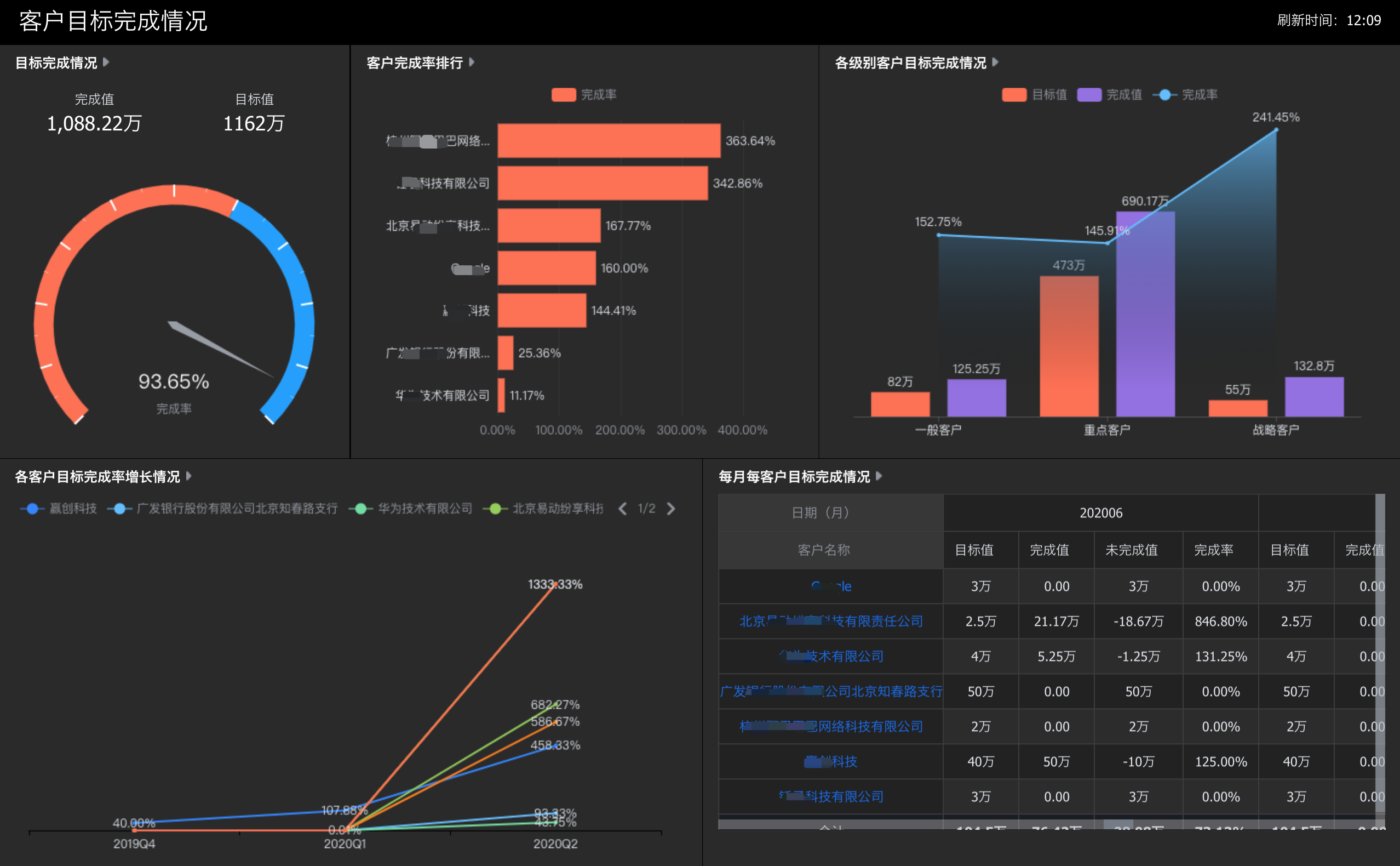 入口: 菜单「数据驾驶舱」 里的「 客户目标完成情况」